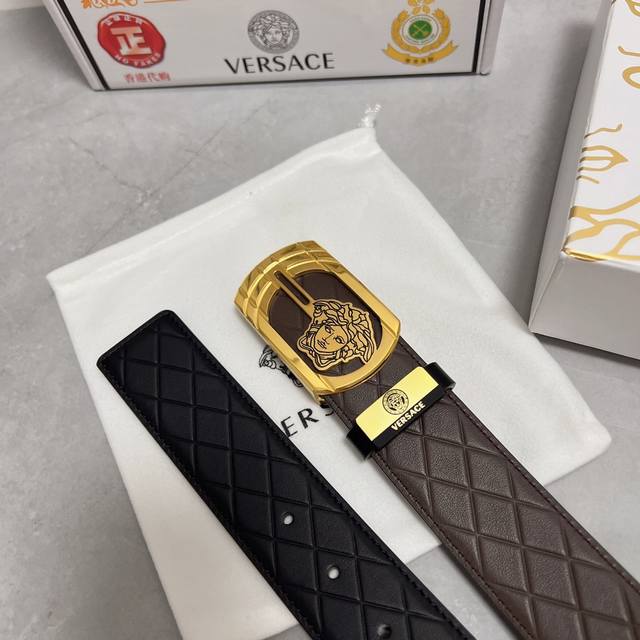 品名:Versace.范思哲 材质:原单牛皮腰带 百分百头层牛皮腰带保证真皮,24K纯钢扣,专柜原单品质、做工精细,时尚大牌,送人自用首选 包装: 请认准如图专