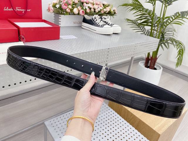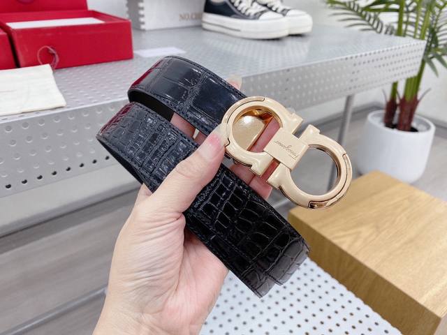 菲拉格慕 原单双面进口小牛皮带身.,搭配原单经典铜扣,原产热压纹理皮料定制,专柜宽度3.5Cm. 温馨提示:长度100-125Cm...