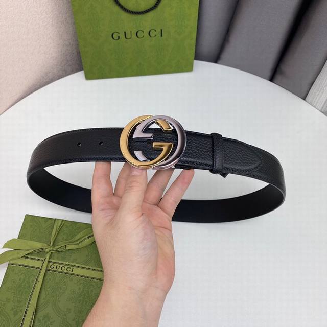配全套包装gucc.I 原單品質 老鼠貨 宽度4.0毫米 進口荔枝紋面平紋小牛皮底 精品纯钢扣 时尚大方
