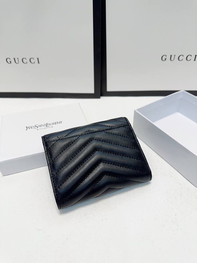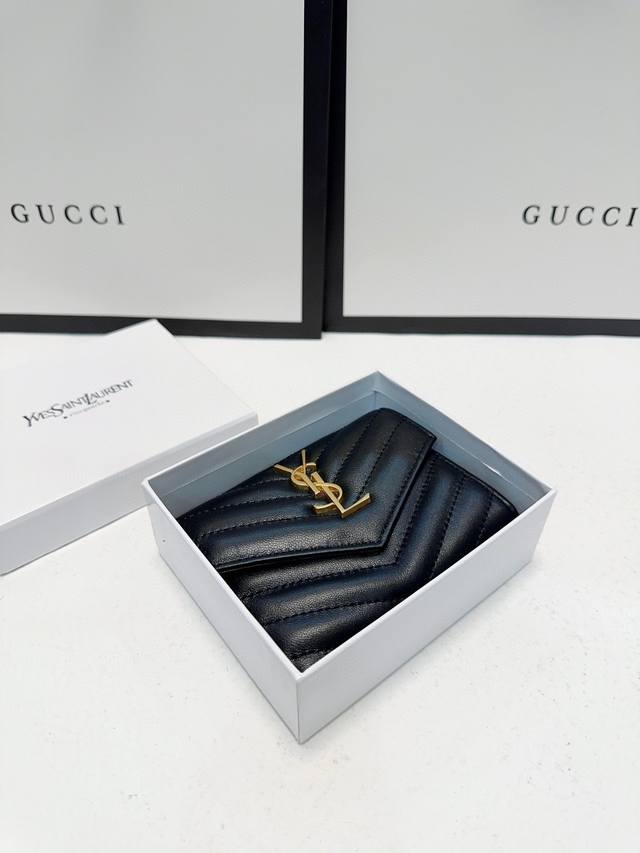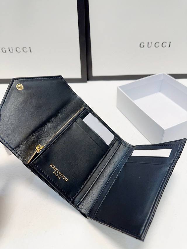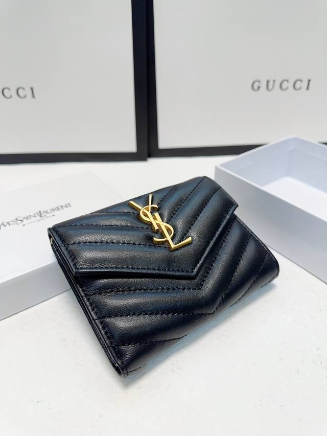 颜色 黑尺寸 15X10圣罗兰款三折短款钱包进口小羊皮质感一流独一无二风格,实用内阁超美超时尚美女必备单品
