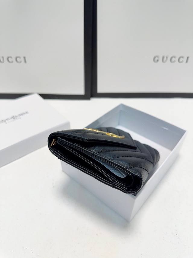 ysl家 Y家短夹 正品开发 进口牛皮压鱼子酱 一个中央隔层,一个纸币隔层,六个卡片槽,一个拉链零钱袋,尺寸不大 用处不少...
