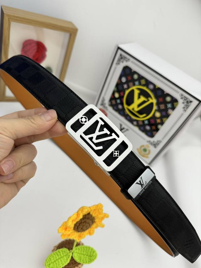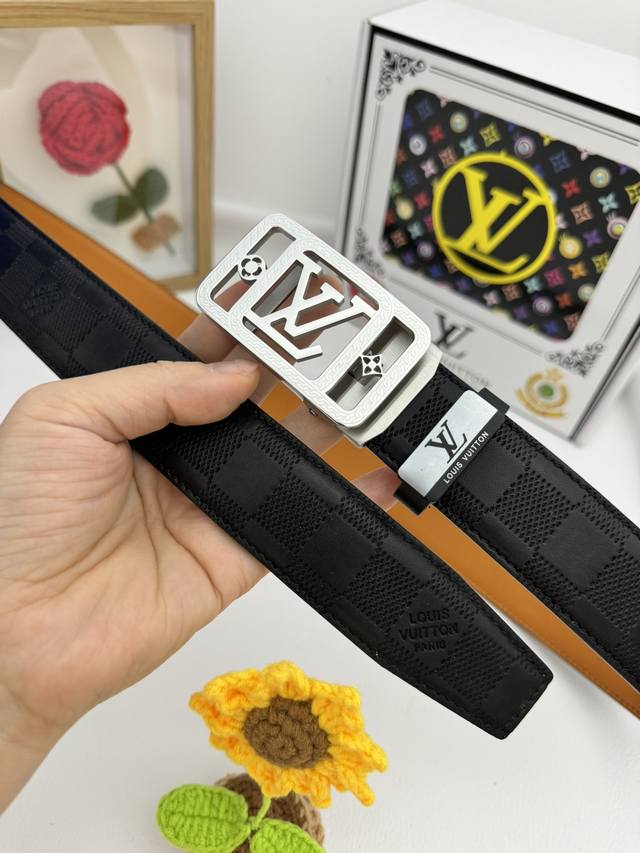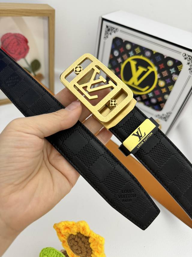 lv:路易威登 Louis Vuitton 正版开模 此款腰带双面采用意大利原厂定制进口牛皮带身 精密电镀标志性五金搭扣 对版专柜足宽40Mm