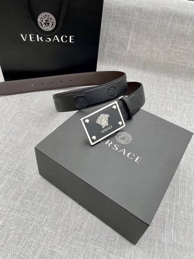 / 宽度3.5Cm Versace范思哲 此款平纹小牛皮腰带饰有一枚几何形状的希腊回纹搭扣,可搭配正装或休闲装。