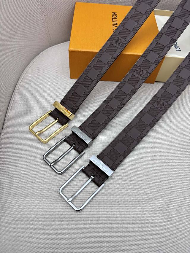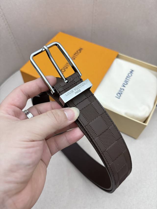 Lv路易男士 宽度3.5Cm 简单大方 精品五金 双面进口皮 佩戴效果非常不错 送礼自用最佳推荐