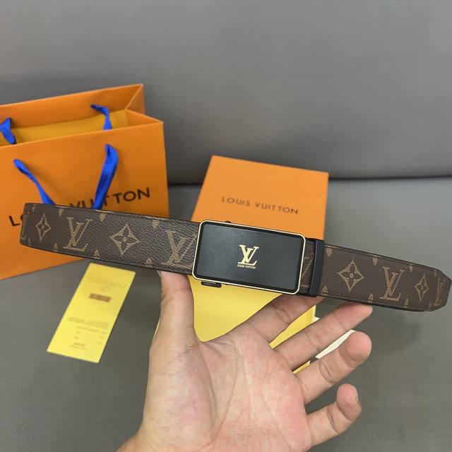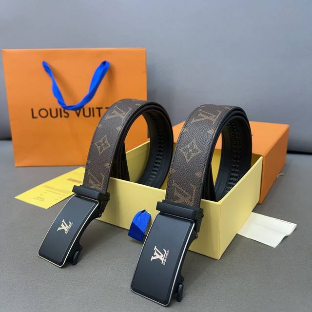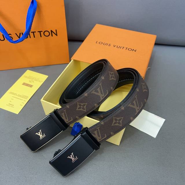 Louisvuitton 路易威登 牛皮腰带 男士经典款皮带 时装搭配必备款 优质合金扣头 采用原厂牛皮带身 机械打孔 高品质全套包装 礼盒 礼袋 小票