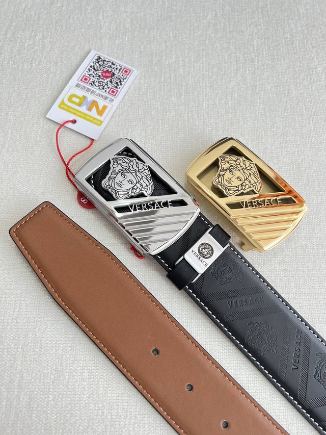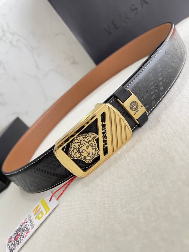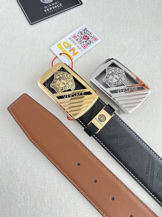 材料:百分百头层牛皮,保证真皮。24K纯钢扣双面可用专柜同等质量, 经典双面头层牛皮印花土黄平纹底,经典人头纯钢材质扣头,双面可用,送人自用首选