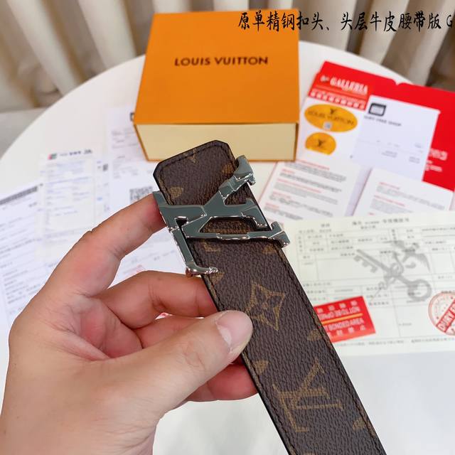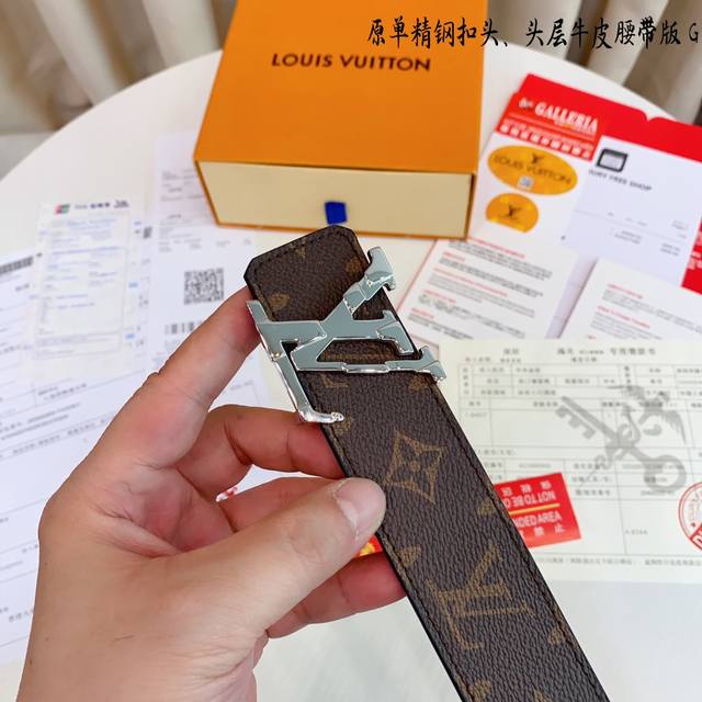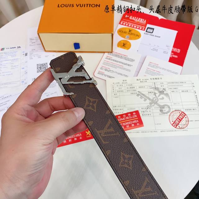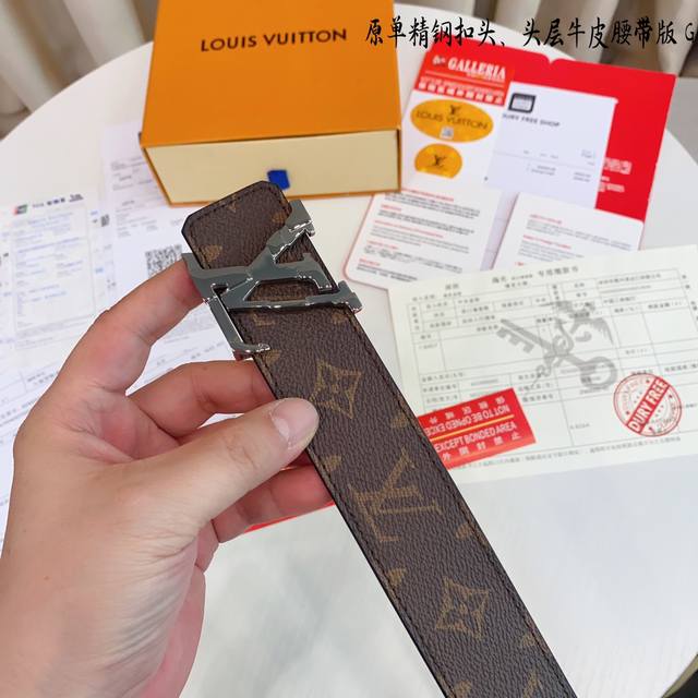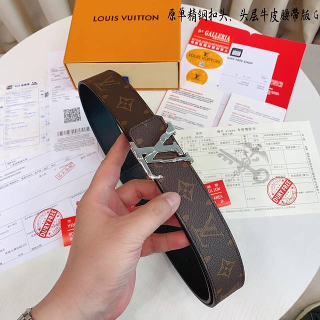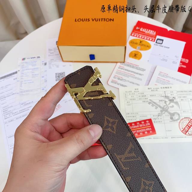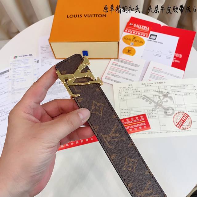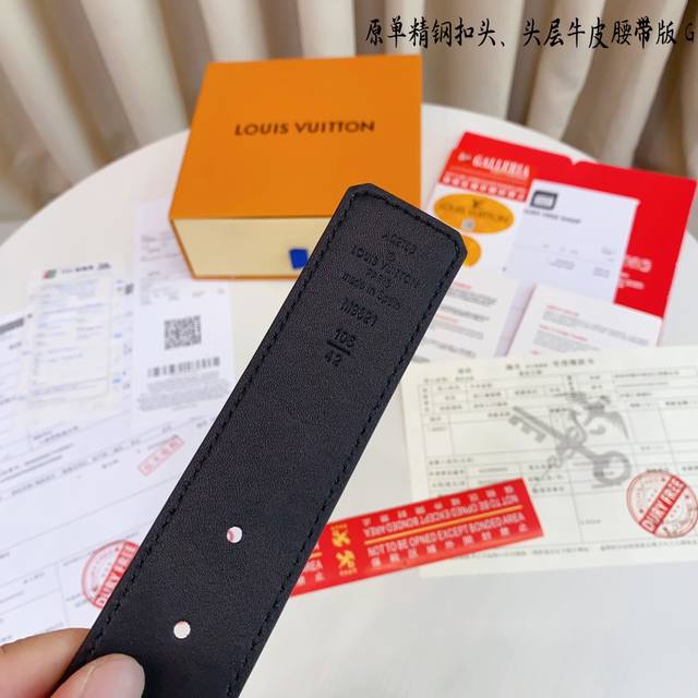 路易l驴家 寬度3.8Cm 面為原廠头层牛皮 風格效果 底為柔軟的黑色头层牛皮 經典字母精钢扣头效果 手感極佳 从买原版到开发历经数月打造而出 选料 做工细节 媲美z