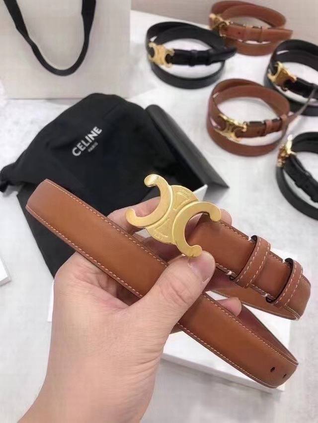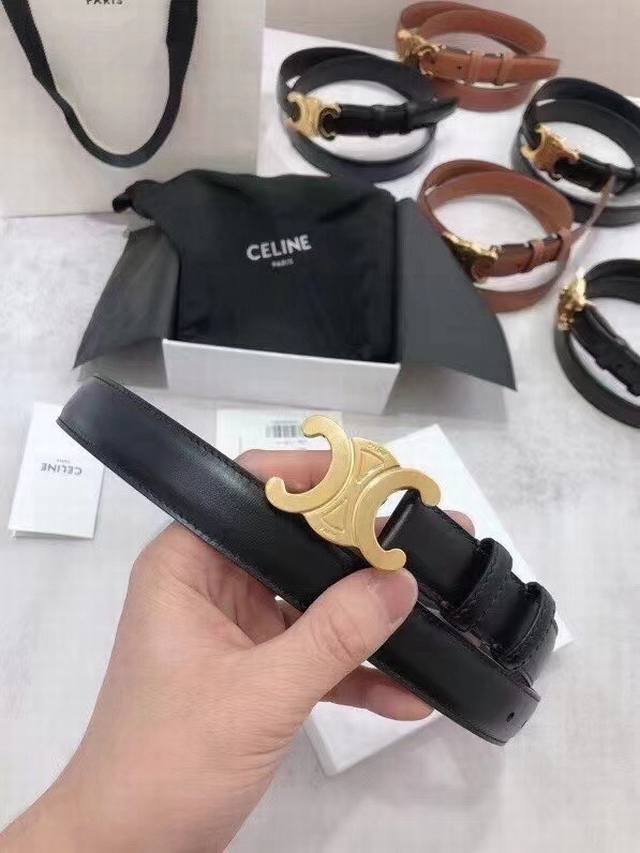 Celine赛琳凯旋门徽标金扣潮流腰带,穿出好身材高腰线的秘密武器。2.5Cm