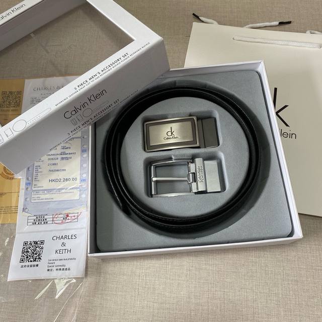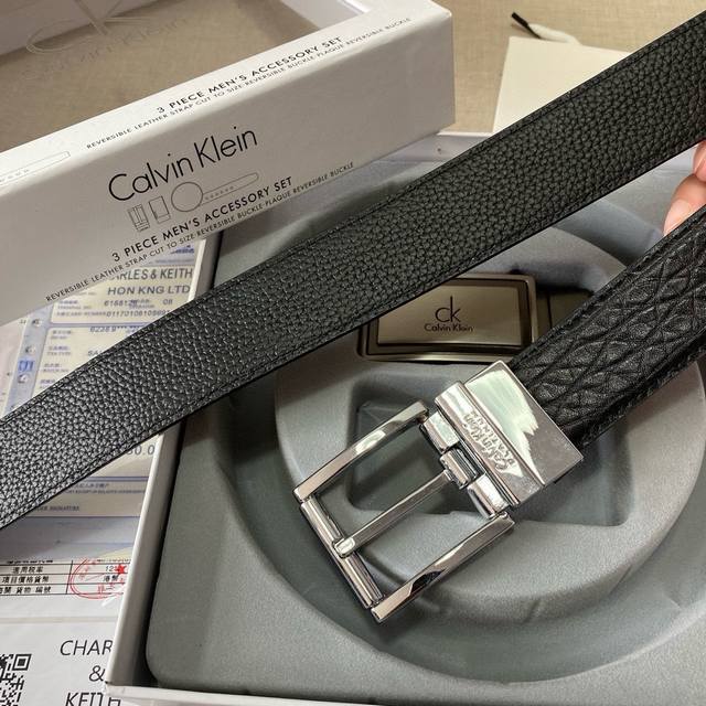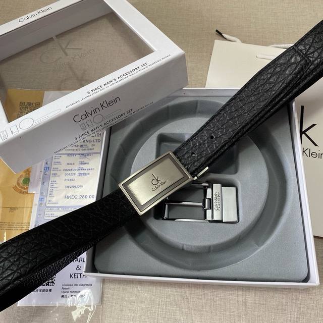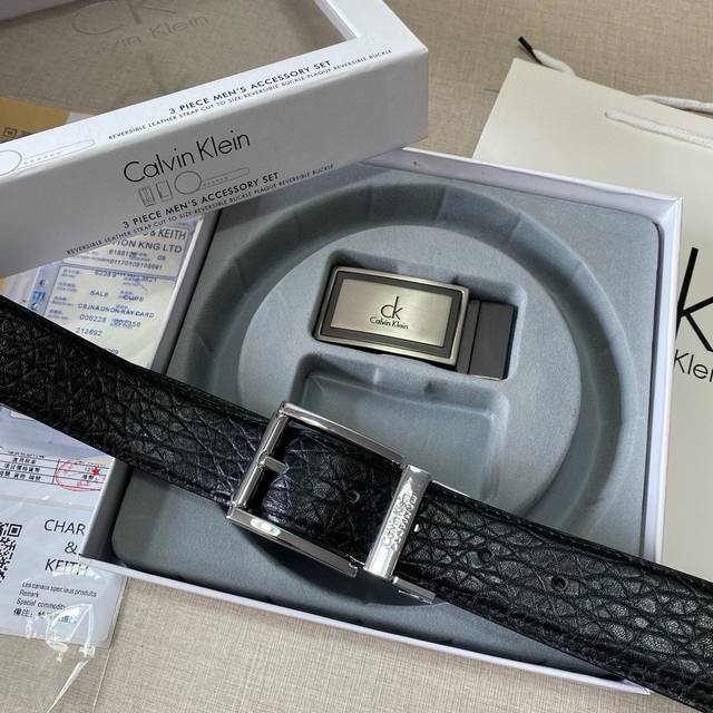 / 双扣礼盒套装 含礼盒 Calvin Klein礼盒套装皮带 爆款来袭3.5Cm宽 头层牛皮,专柜同款 高真空电镀五金 均可旋转扣头、长度可剪裁。一带身配二扣头自