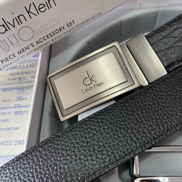 双扣礼盒套装 含礼盒 Calvin Klein礼盒套装皮带 爆款来袭3.5Cm宽 头层牛皮,专柜同款 高真空电镀五金 均可旋转扣头、长度可剪裁。一带身配二扣头自
