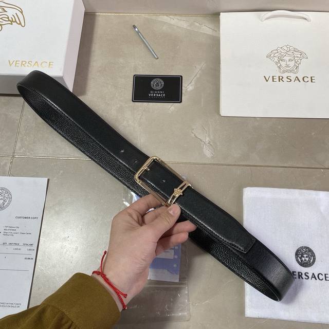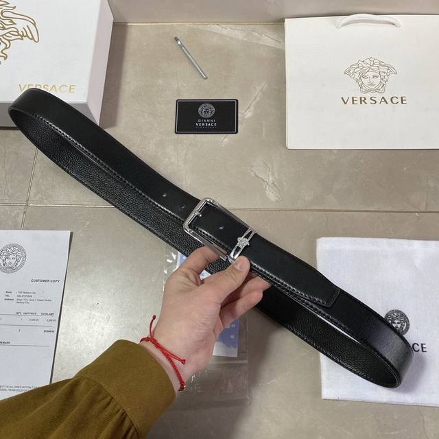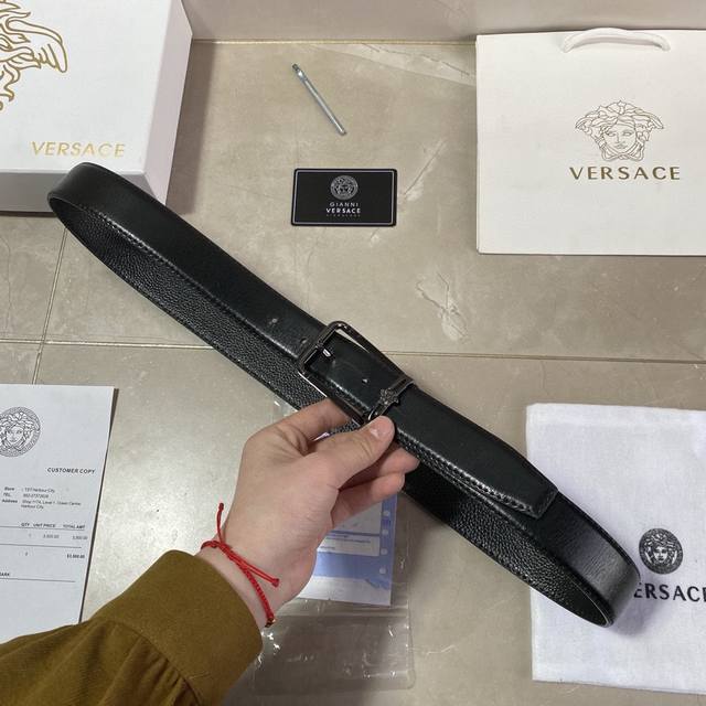 范思哲-纯牛皮 高档货 纹路清晰 手感超好 炸街 宽度:3.4厘米 配套美国simon-全套包装 正品一致的吊牌全套包装 配纸袋 礼品盒...