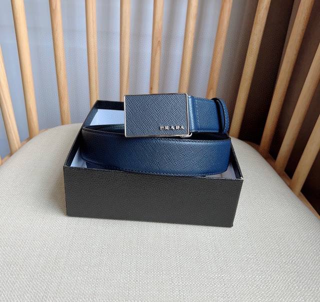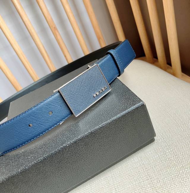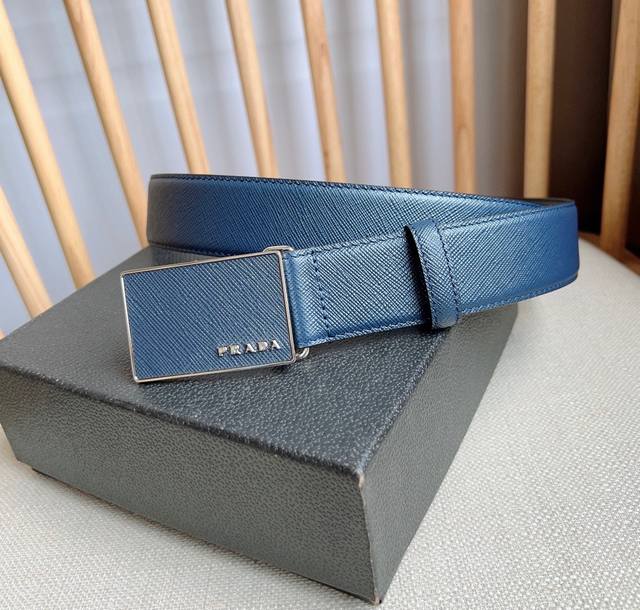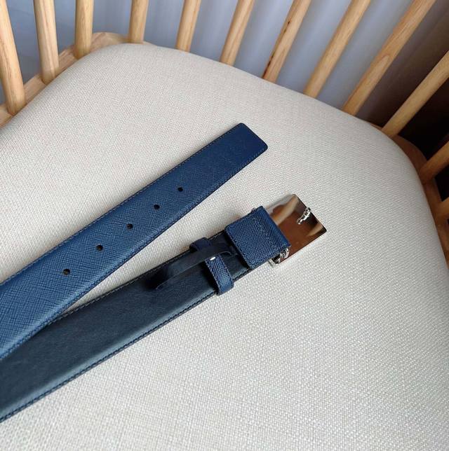 / Prada 普拉达 专柜最新款 这款腰带以saffiano皮革制成具有优雅精致的细节 带扣上饰有刻字徽标 打造个性造型 宽3.5