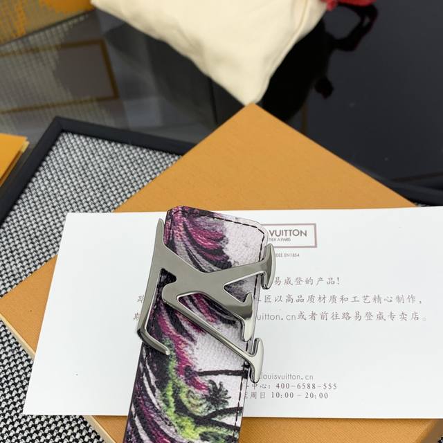2024 早秋男装系列跟随丹迪水手的步伐开启一场环球之旅。此款 Lv Tag 双面腰带将冲浪风格图案铺陈于一面,唤起畅游热带岛屿的美好记忆,翻转即现经典 Monogram 元素。Lv Tag 搭扣再添瞩目一笔。