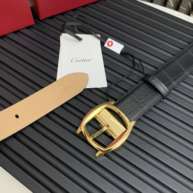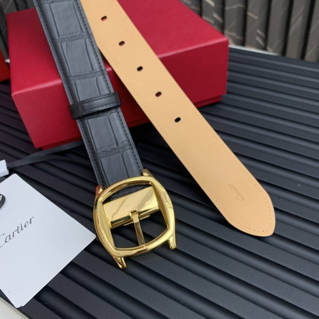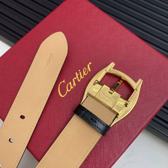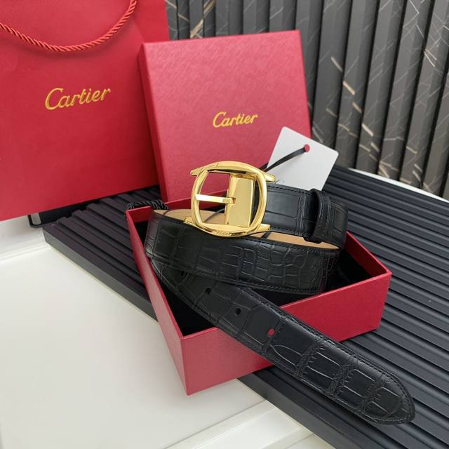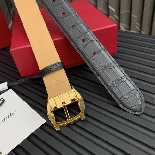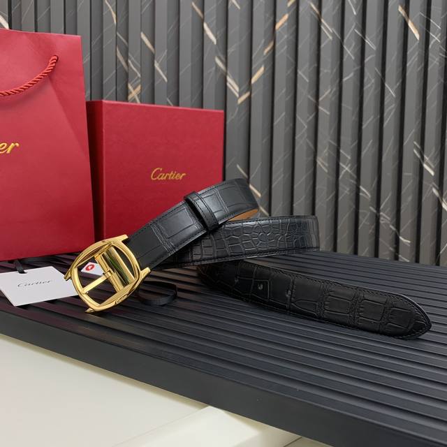 镀钯饰面针扣式皮带,“Cartier”标识。黑色尼罗河鳄鱼皮皮带,浮雕“Cartier”标识。尺寸:宽35毫米