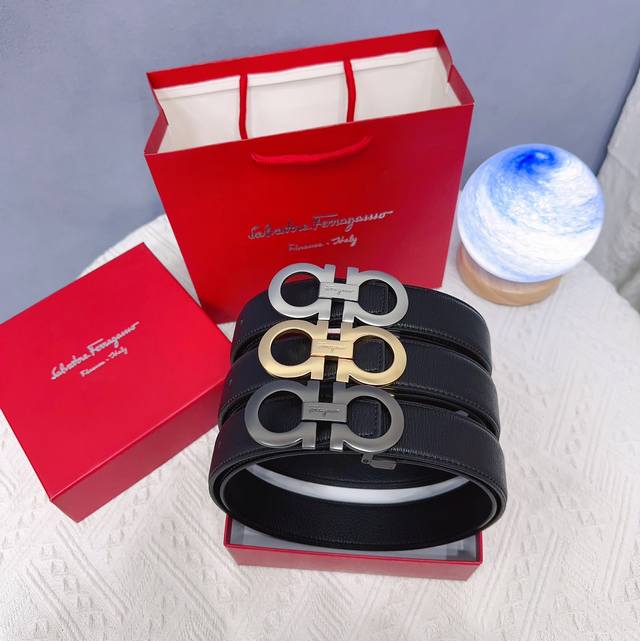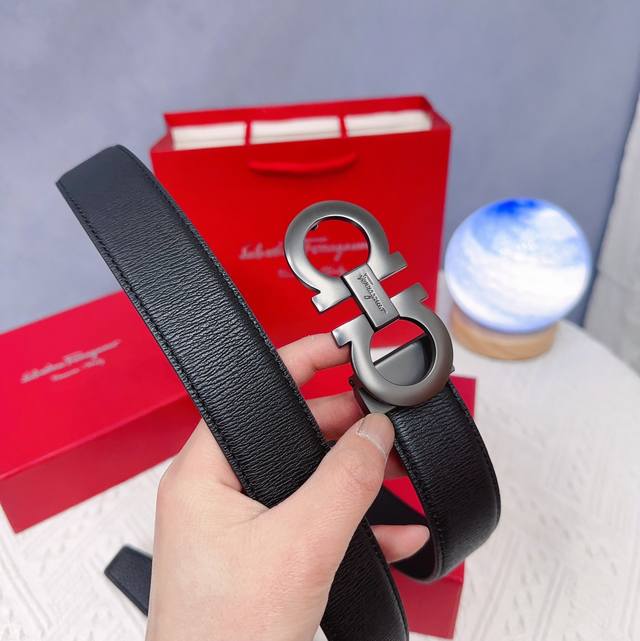 / Ferrago 菲拉f 雙面头层牛皮 全新效果精钢材质搭扣 寬度35毫米 該皮帶可調節 且能根據需要裁剪達到修身效果