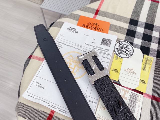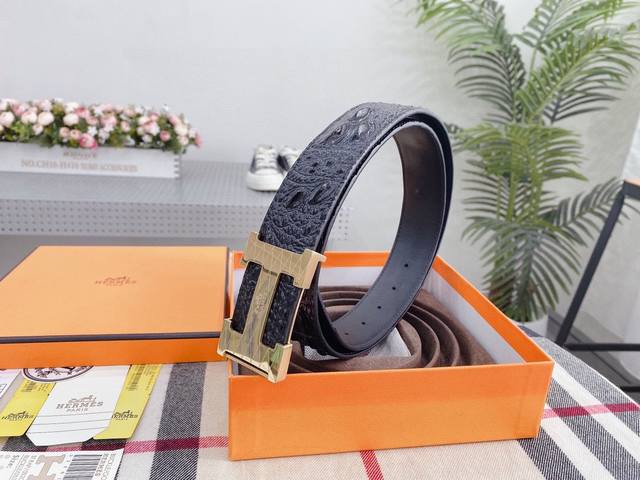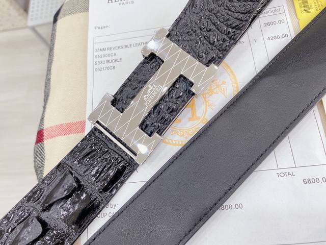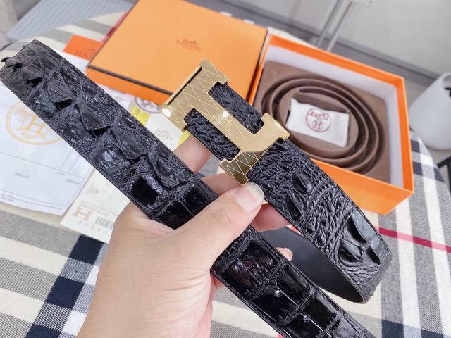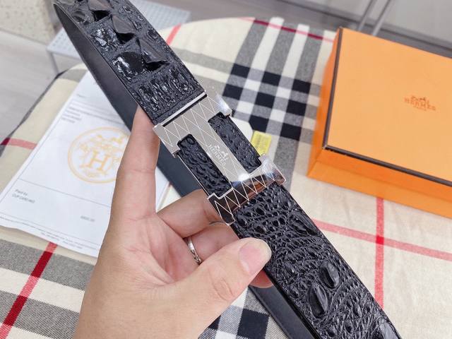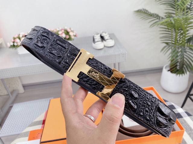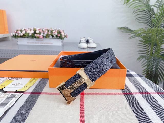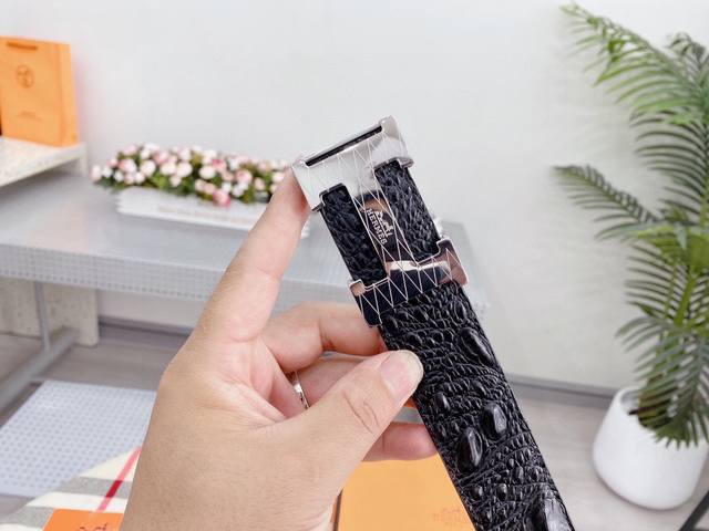 / 爱马仕鳄鱼采用进口牛皮压制鳄鱼骨带身。整条不拼接 纹路清晰 强韧紧密 跟真鳄鱼皮可对比 成功男士的标配 搭配高档精钢扣,宽度3.8厘米 牛逼格 送礼自用首选。