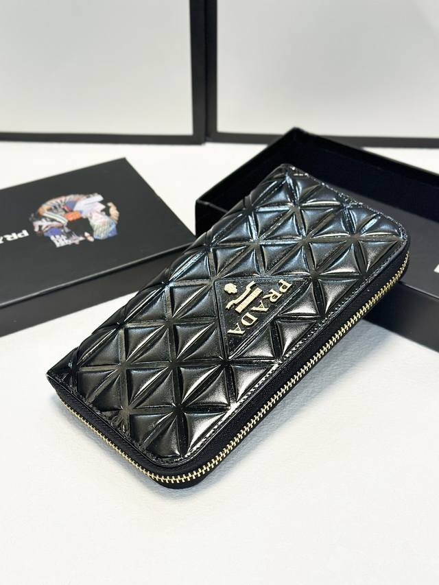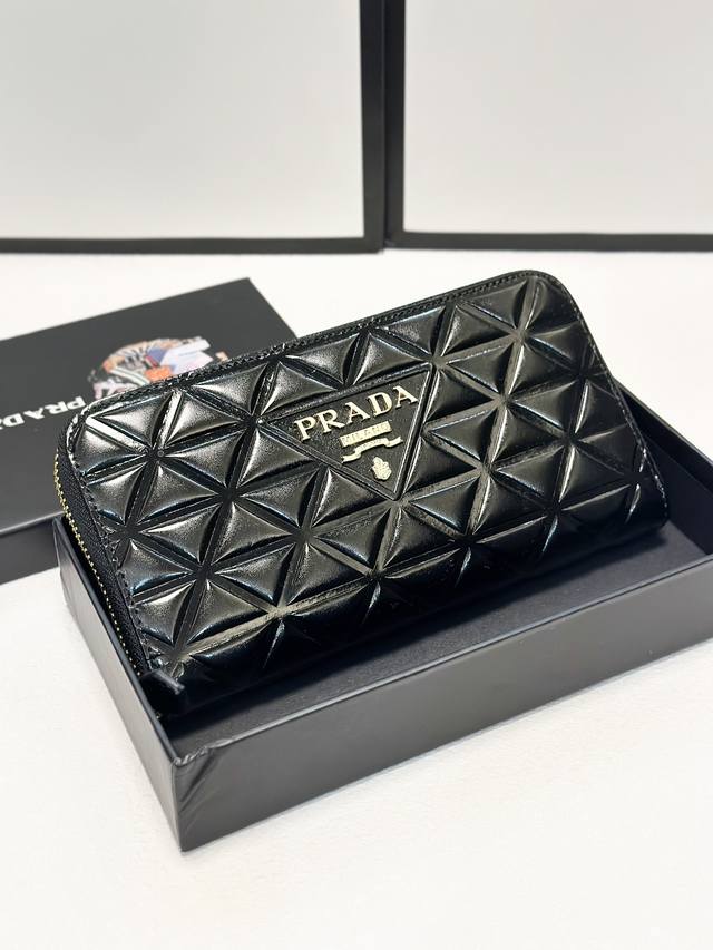 / 颜色 黑尺寸 19X10普拉达爆款亮面牛皮单拉链手包钱包款式经典做工精细耐磨耐用手感极佳