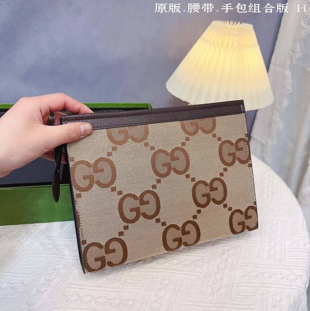 / 腰带手包2件套古奇g家 腰带采用头层牛皮带身,带宽3.8Cm。扣头采用原单精钢五金扣头。原版手包原版复刻。尺寸:26*20独家定制2件套高端包装。高端大气送礼之