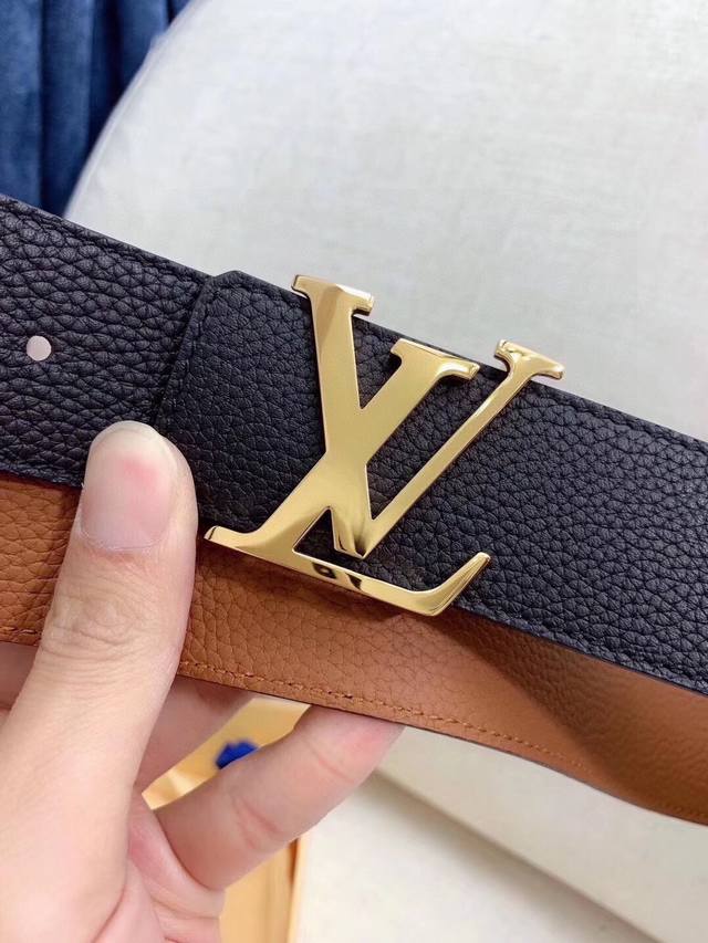 路易威登louis Vuitton 法国 专柜品质 官网同步 宽度3.8Cm 精美钢扣头 原版意大利双面进口小牛皮原版花纹 双面可用 黑色 咖啡 双色 手感极佳 上身郊果棒 商务休闲两用 长度100一125下单请留言长度