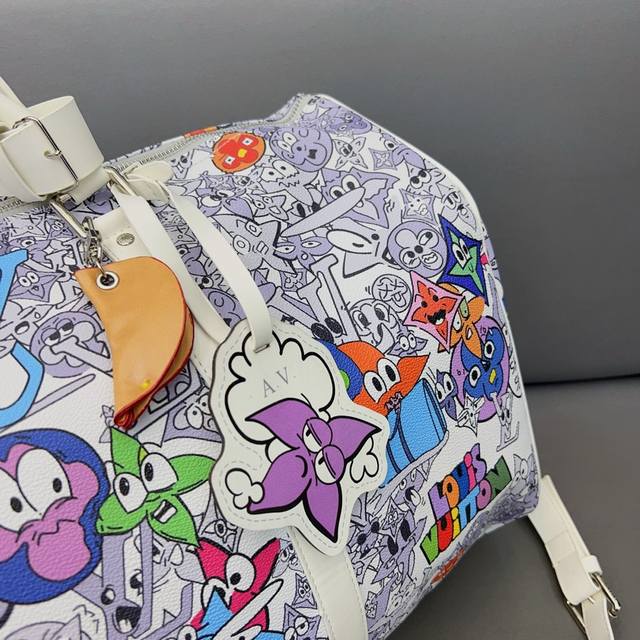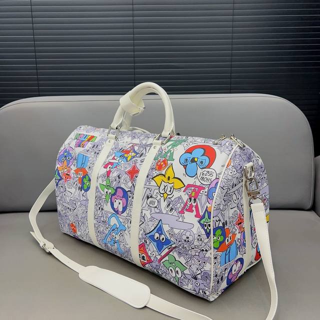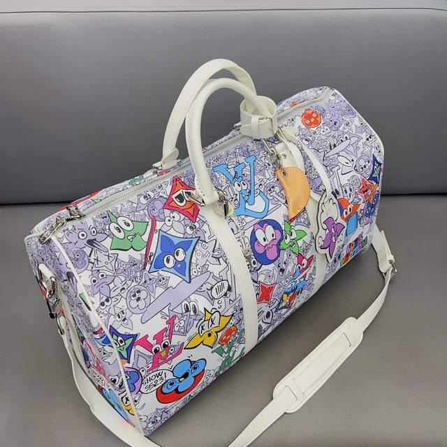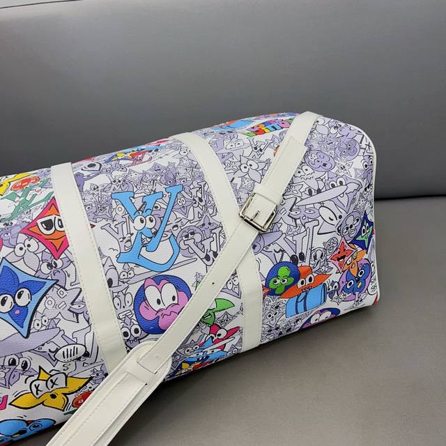 / Louisvuitton 路易威登 Keepall50 涂鸦旅行袋 手提包袋 机场包 采用精湛镶嵌细工 实物拍摄 原厂原版面料 配送小防尘袋 尺寸 50 X 2