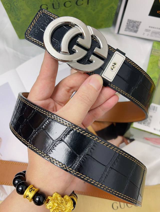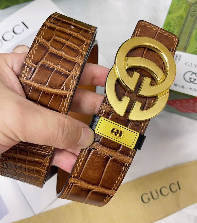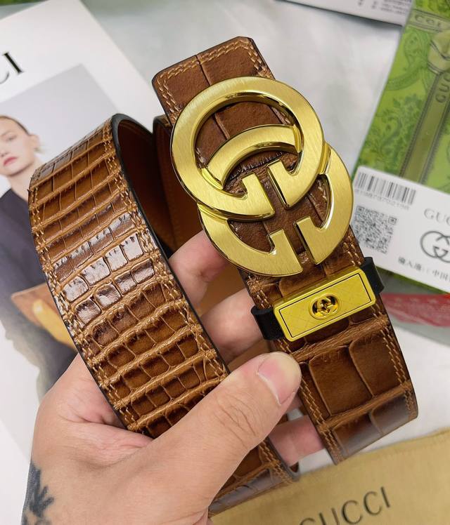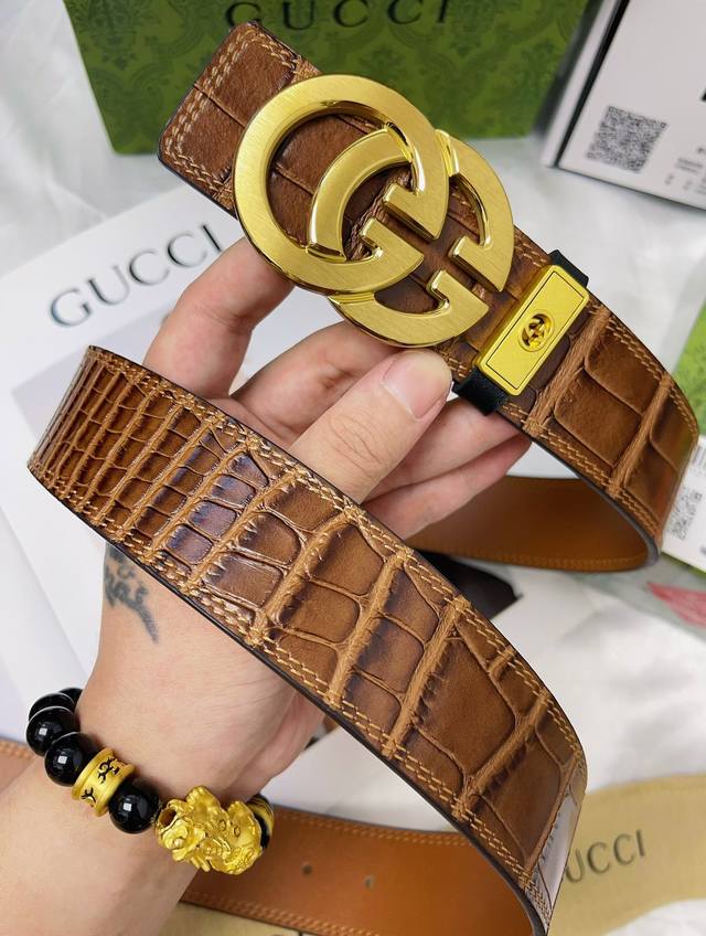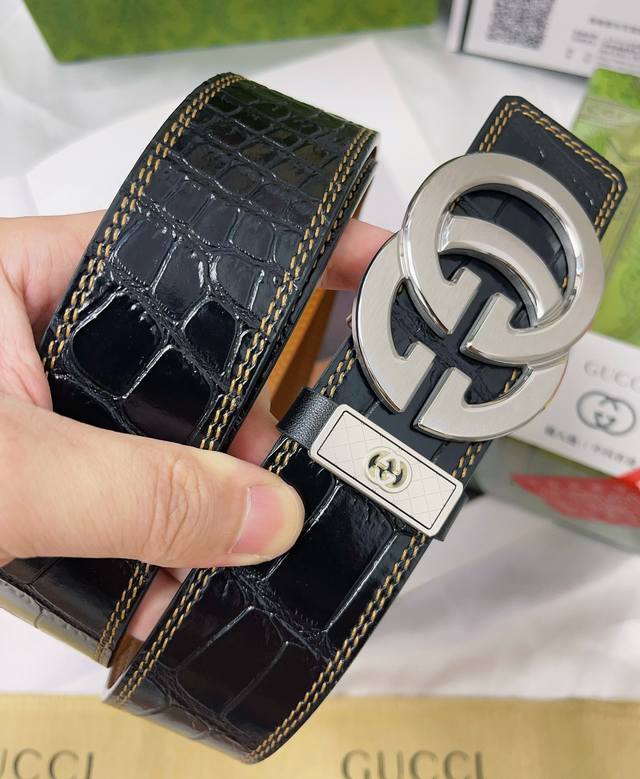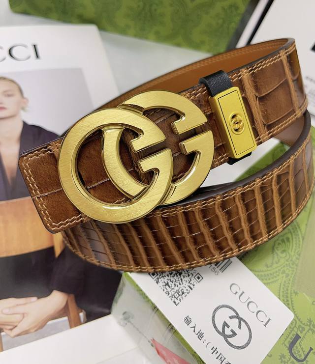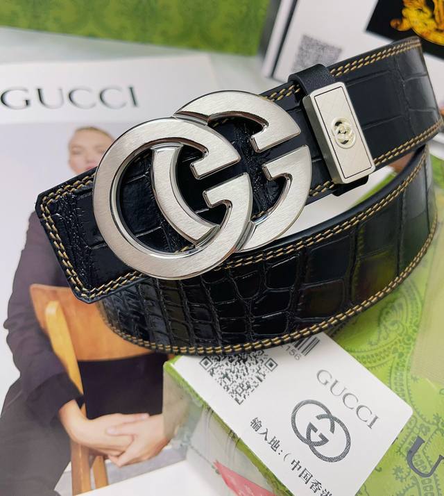 腰带:古驰.原单品质百分百头层牛皮,保证真皮。雕花镂空工艺.真空电镀.永不掉色.24K纯钢扣头层鳄鱼皮纹路双面两用专柜同等质量, 送人自用首选