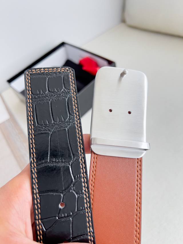 材料:百分百头层牛皮,保证真皮。24K纯钢扣专柜同等质量, 经典头层牛皮鳄鱼纹双线土黄头层牛皮平纹皮底,银扣,可自由裁剪,经典logo,送人自用首选