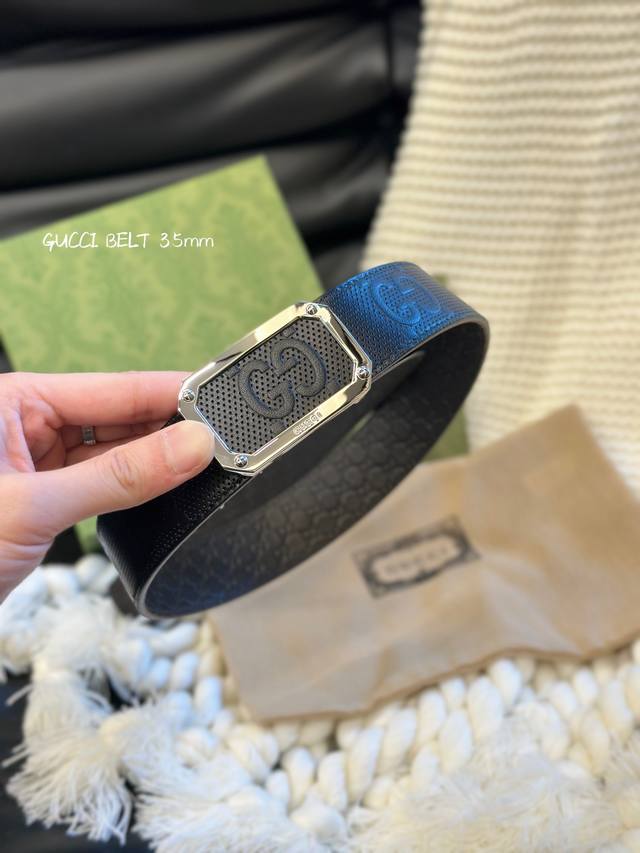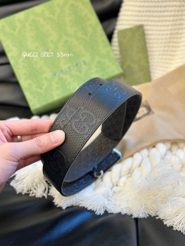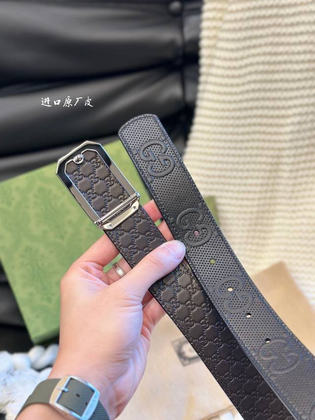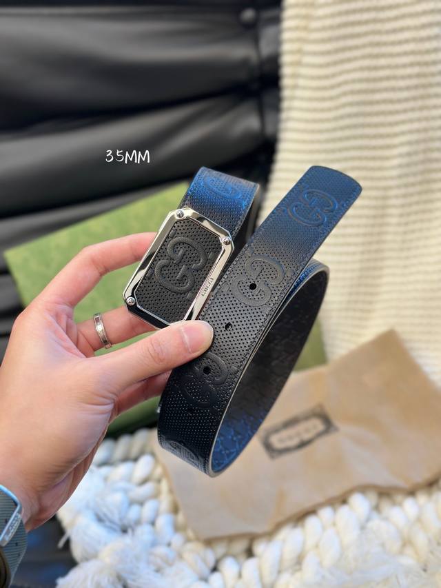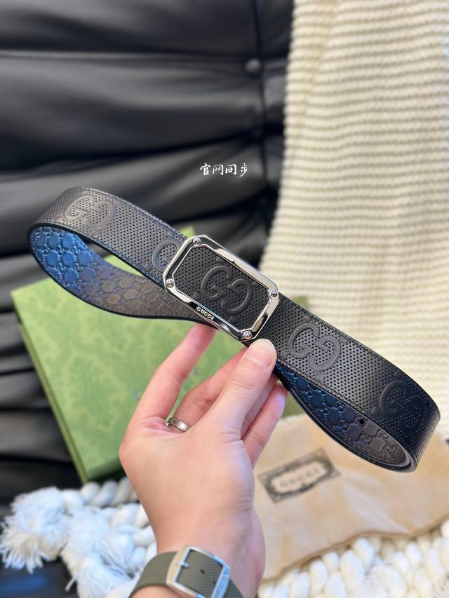 Gucci经典款头层压g花 进口原厂皮 宽3.5Cm 镂空四方版扣 高质量