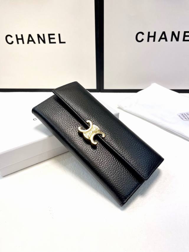 Celine新款卡包,Triomphe名片包,经典花纹大面内配平纹超纤,金色饰面Triomphe金属按扣开合,1个加厚主隔层,3个内侧卡槽。...