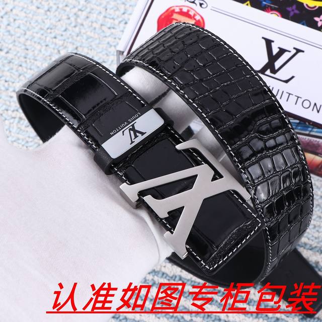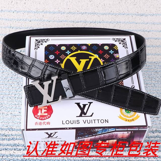 / 男士腰带:Lv 路易斯登 原单 男士皮带:百分百头层牛皮,保证真皮。24K纯钢扣双面可用专柜同等质量, 送人自用首选 包装: 请认准如图专柜包装,赠送打孔器,银