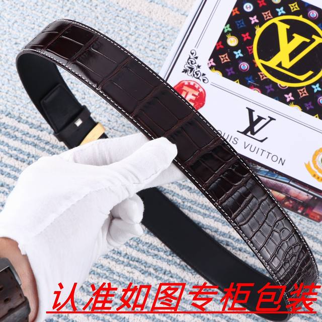/ 男士腰带:Lv 路易斯登 原单 男士皮带:百分百头层牛皮,保证真皮。24K纯钢扣双面可用专柜同等质量, 送人自用首选 包装: 请认准如图专柜包装,赠送打孔器,银