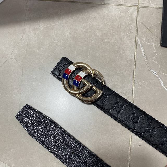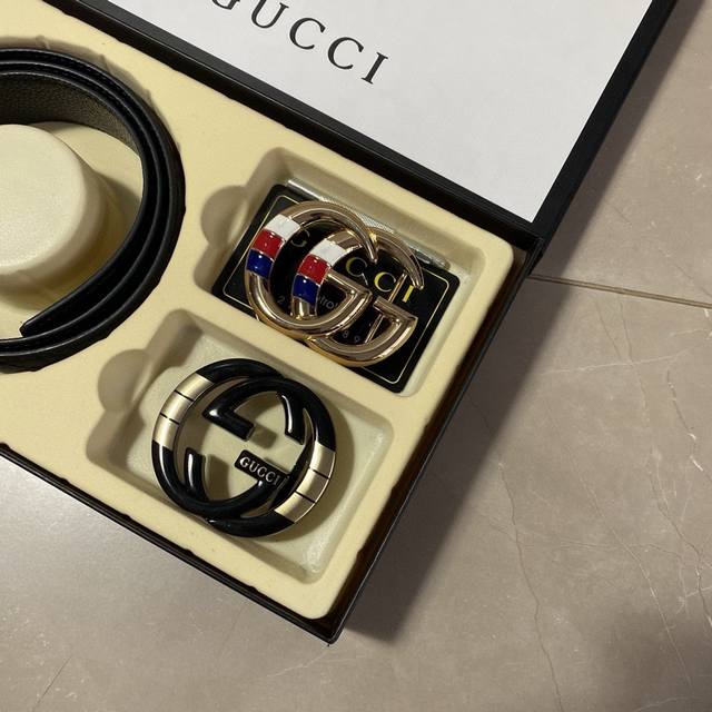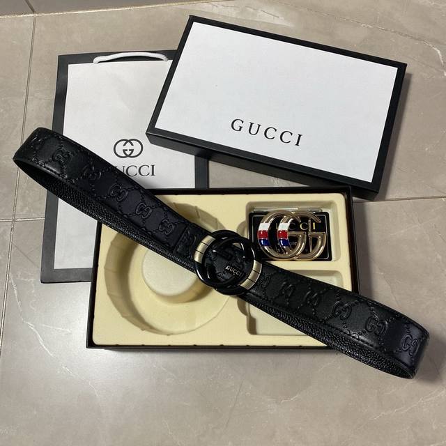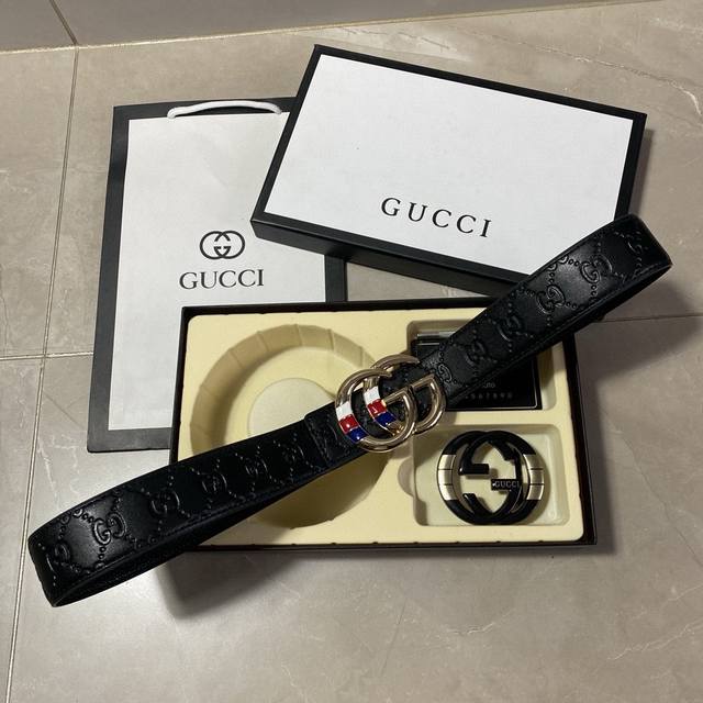 / 古驰gucci精品款 ☆双扣礼盒套装 含礼盒 专柜有售 Gucci专柜在售正品 此款采用头层牛皮制作 走线油边细致 正品开模 搭配广州原版扣经久耐用、3.8Cm