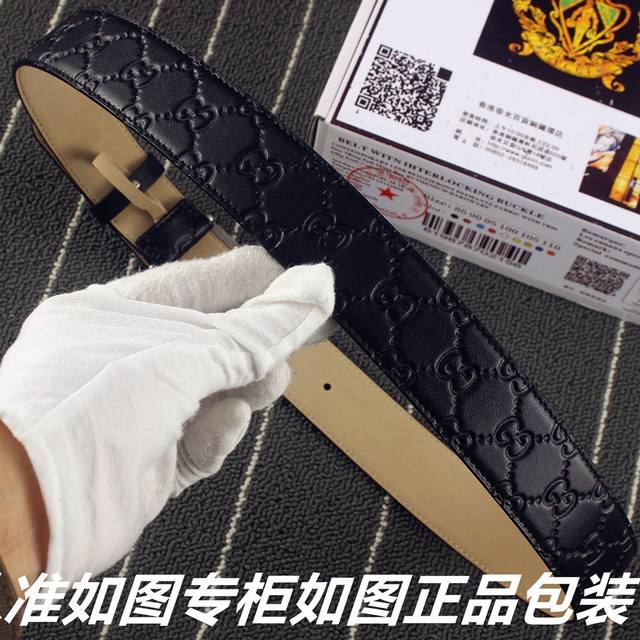 配全套包装礼盒 Gucci 经典全皮压花,原版进口南非皮底,精品双g钢扣 高端品质,不惧对比,宽度:40Mm
