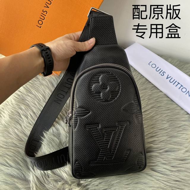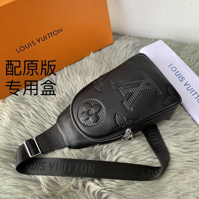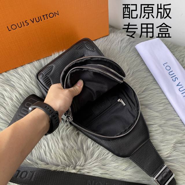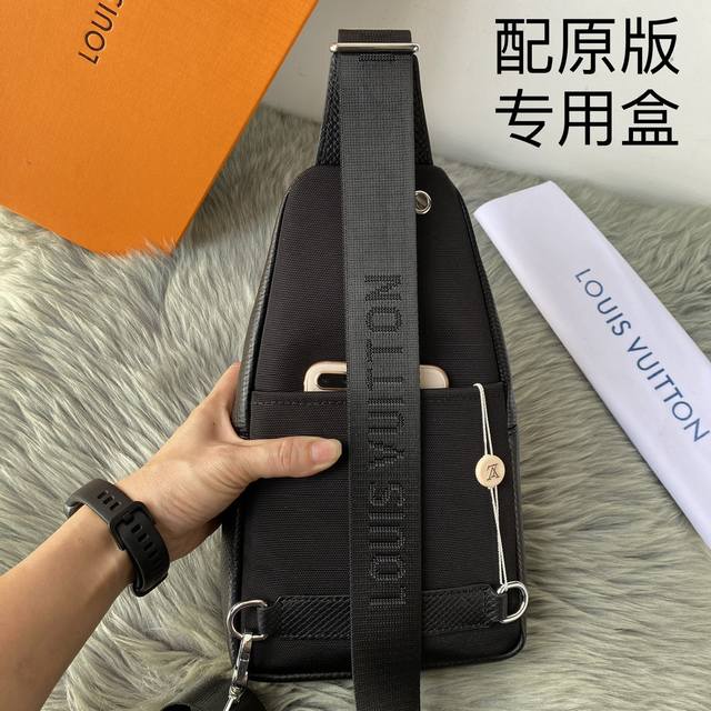 配原版专用盒 原单货 批 ,最新款式 Lv 男士胸包火爆出货 实物拍照无添加任何效果 原版进口头层牛皮皮质手感柔软舒适贴心设计耳机线钻孔,采用专用五金.原版里布