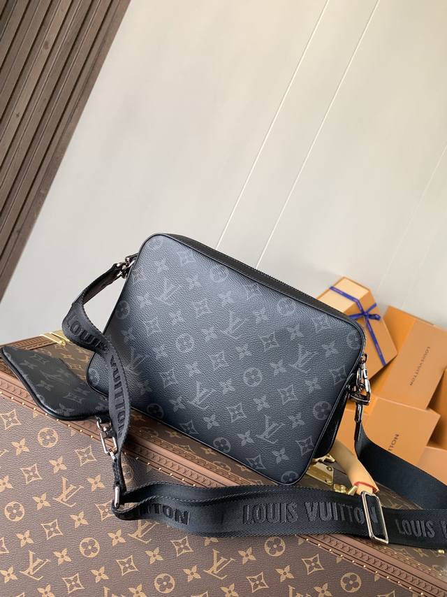顶级原单,变码芯片 40519黑格,69443黑花 Trio Messenger 邮差 路易威登的经典damier石墨帆布为这个新版本的trio Messeng