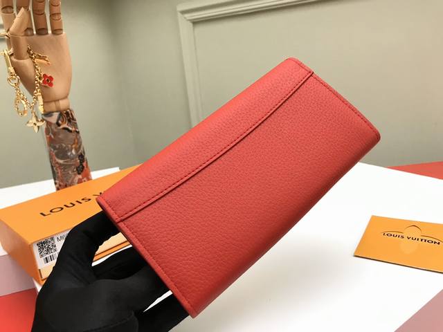 / 顶级原单 M60471大红采用柔软的taurillon皮质,Lv商标以皮革包裹,这款优雅的钱夹设计灵感来自于capucines标志性的设计流线。手感好且实用性强