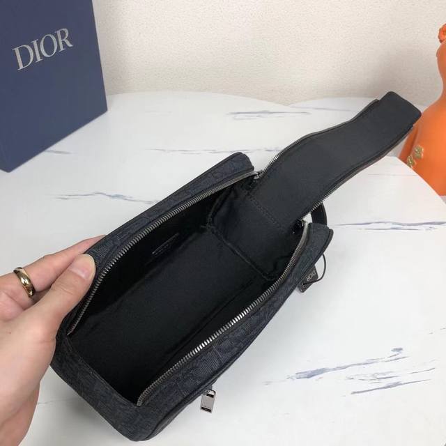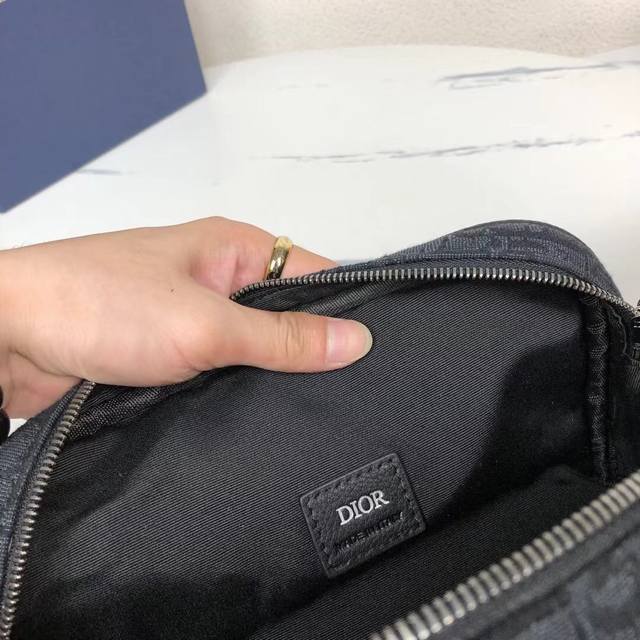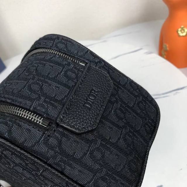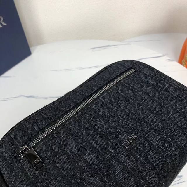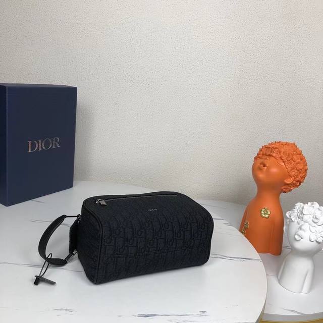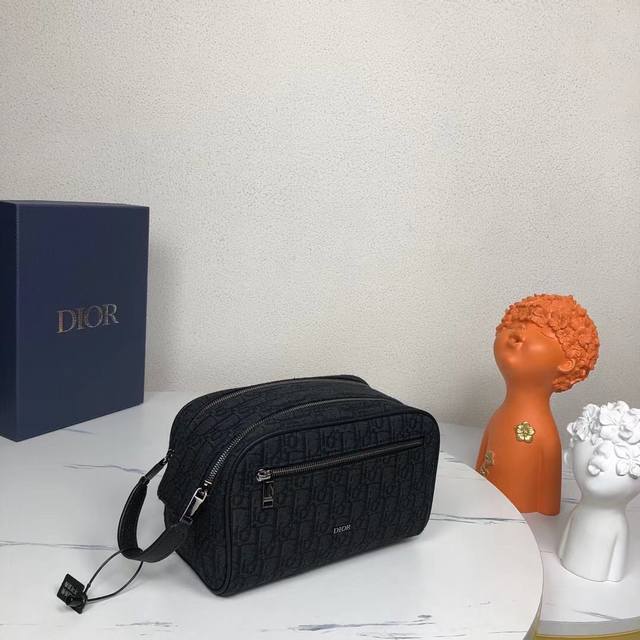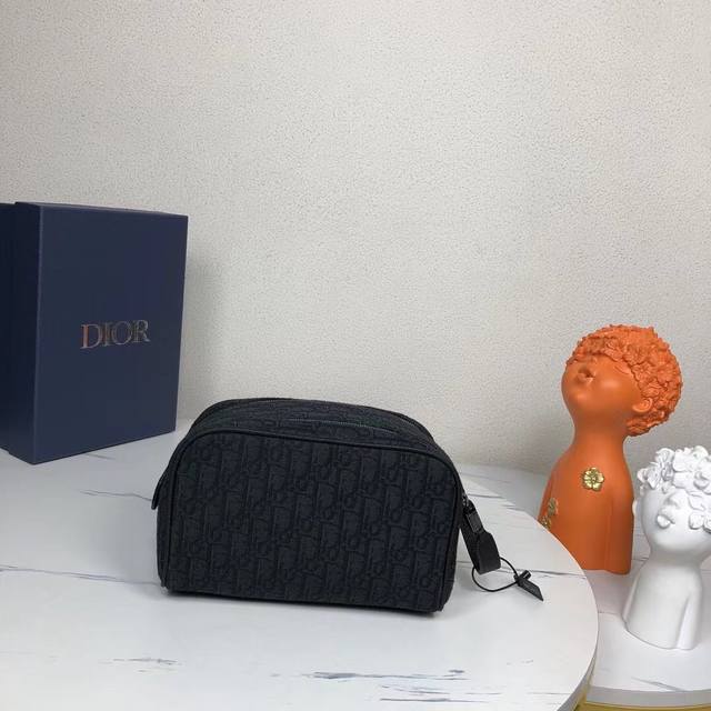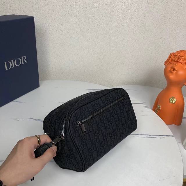 这款洗漱包融合实用功能与简约设计。采用黑色 Oblique 印花面料精心制作,饰以同色调粒面牛皮革饰边,正面点缀以 Dior 标志。正面设有一个拉链口袋、一个宽敞的拉链隔层,以及两个插袋。配备皮革手柄,可手拿或放入各式手袋中。