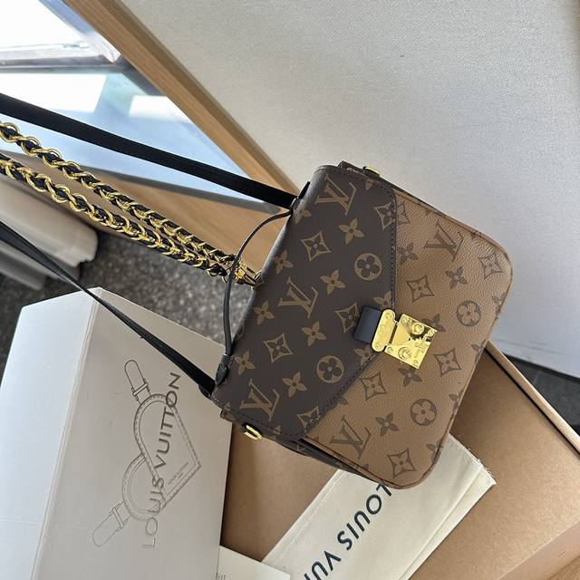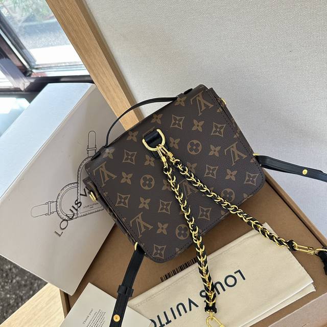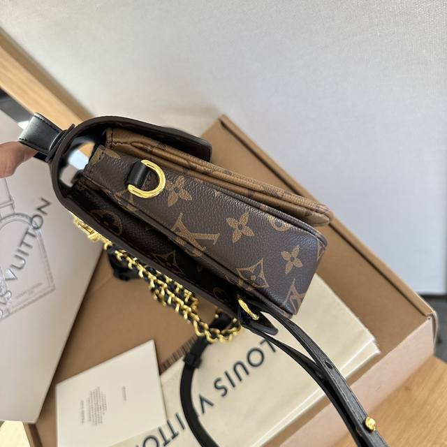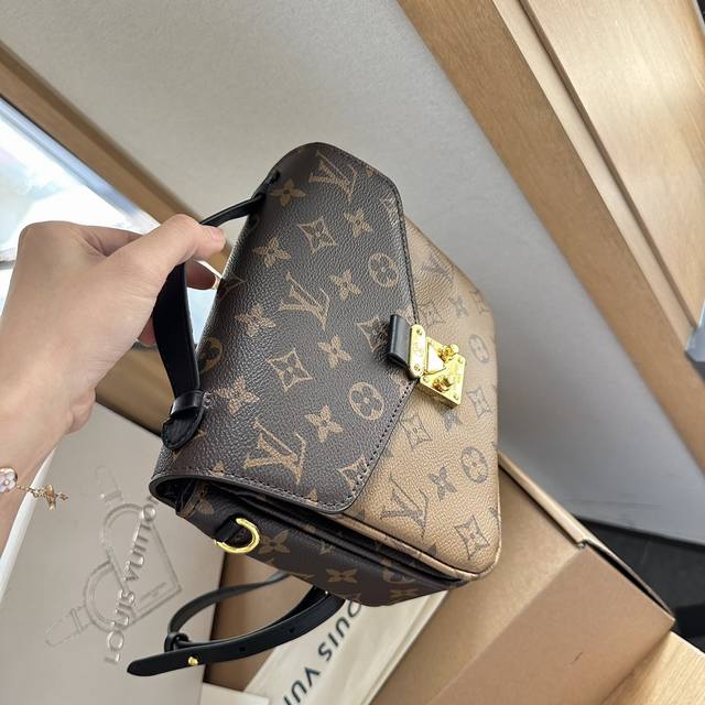 Lv 邮差双肩包来咯 M46932 这款玲珑且实用的excursion小号背包采用monogram帆布材质,配以皮革饰边。洋溢徒步风度。主隔层采用可调节滑扣开合,正面有两个搭扣口袋。除顶部手柄外,还配有一条链条,可自由切换背携方式。尺寸:21 Cm