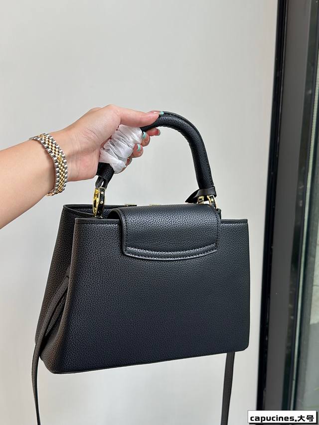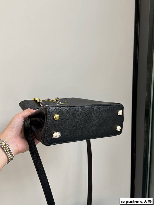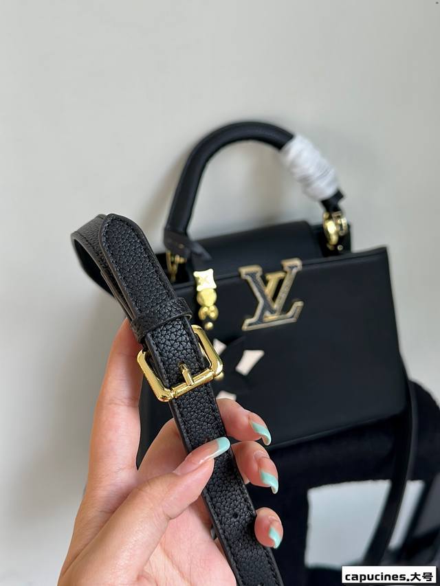 Capucines -共有2尺寸风格以简约、百搭、职业为主 包面有着经典小花元素、拼接着金扣。也十分减龄适合通勤日常中号手柄高度12厘米可以手提、腕挎单肩。旁边还有两个小环衬托capucines很显贵妇气质