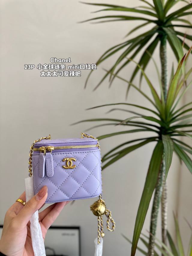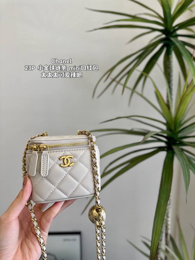 / 羊皮 配盒 Size:11*8Cm Chanel 香奈儿小香家 链条金球 Mini小盒子 23P小金球口红包 太太太可爱辣吧 没有人会拒绝chanel的爱心金球