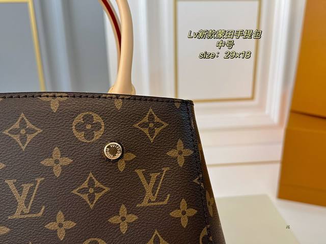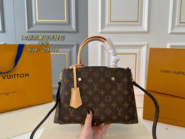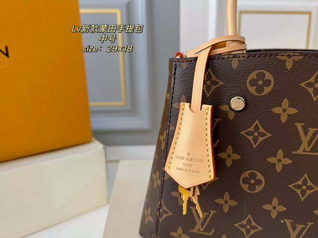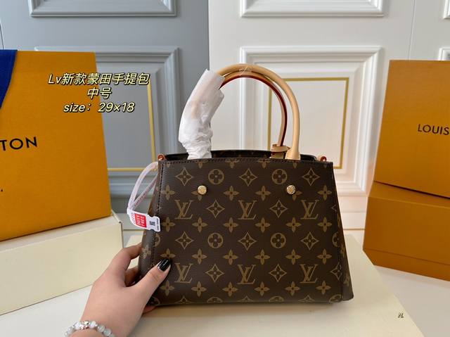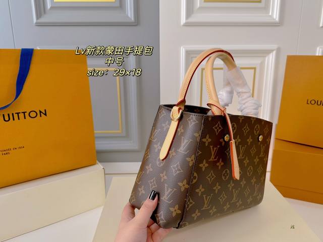 / 中号 折叠盒 Size:29×18中号 Lv路易威登新款蒙田bb手提包 包身挺阔不易塌,实用性很高~ 巨能装,手提、臂挽,也可斜背 老花的配色经典不过时,四季背