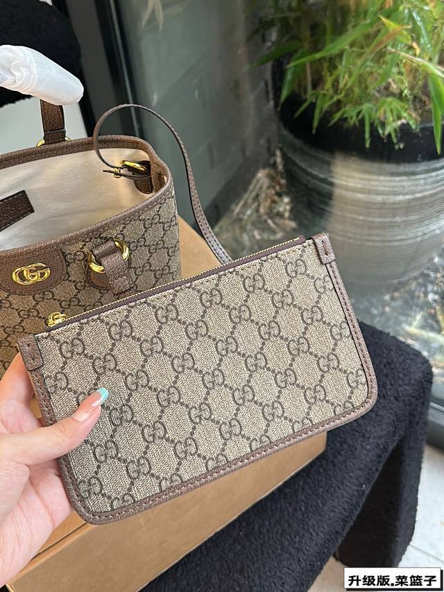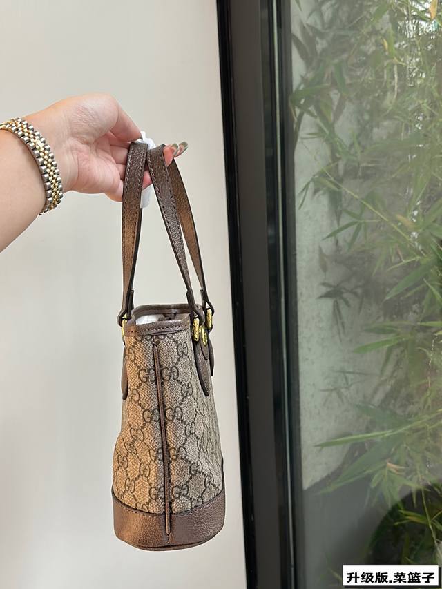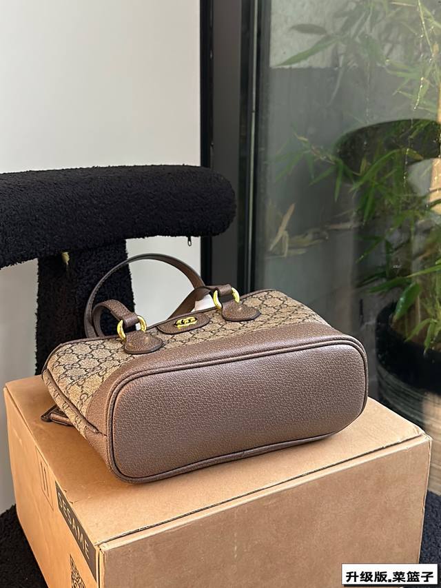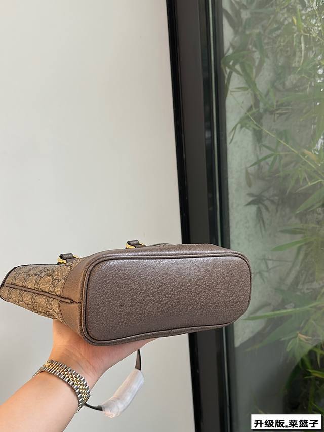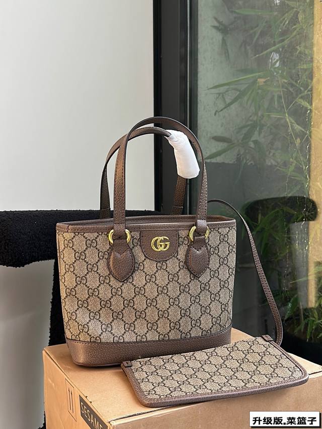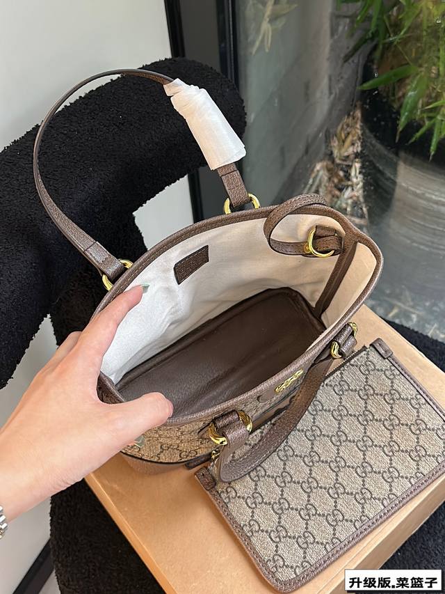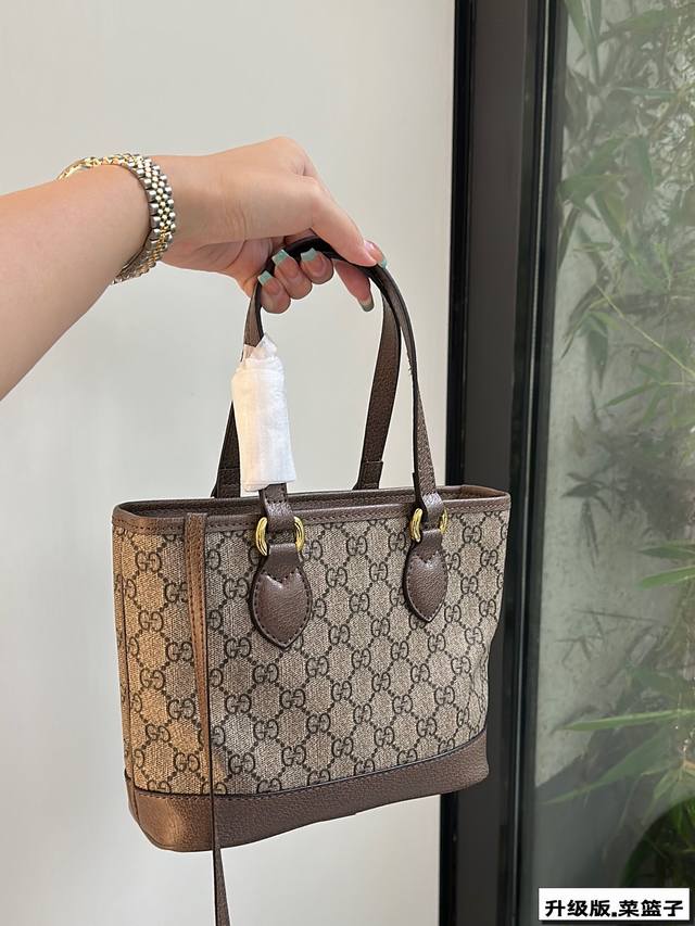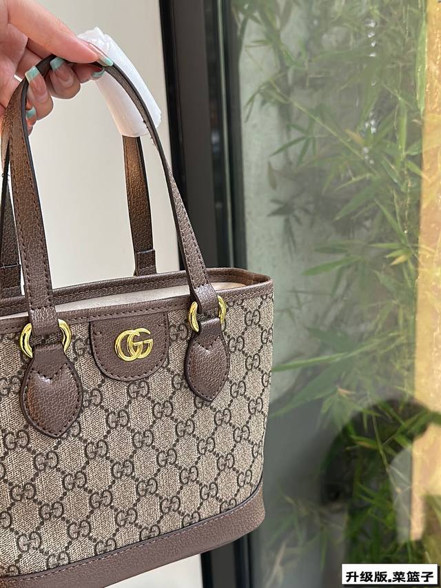 全套礼盒包装 牛皮版本 Gucci Ophidia 系列 手提菜篮子tote 老花和乌木色 匠心打造,设有一个内部拉链袋,外部缀饰双g和条纹织带。 棕色皮革滚边