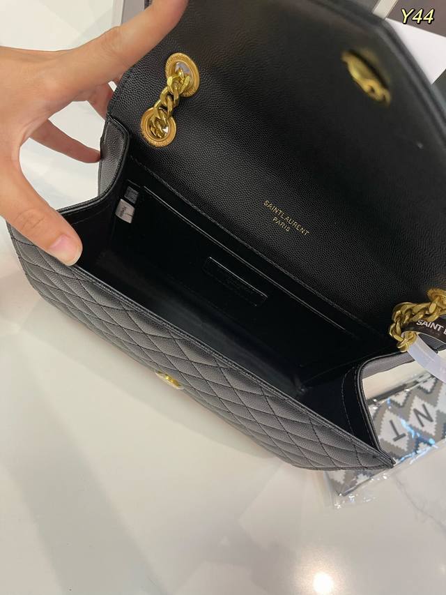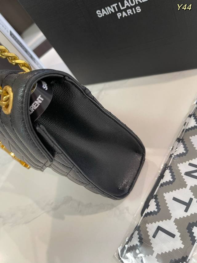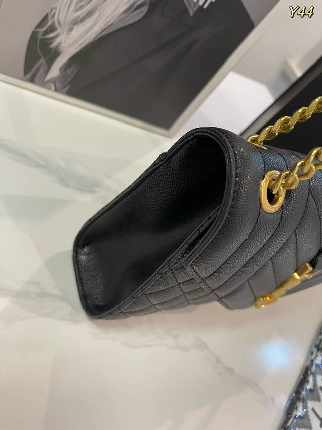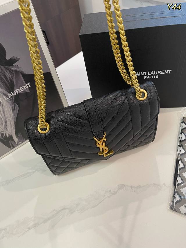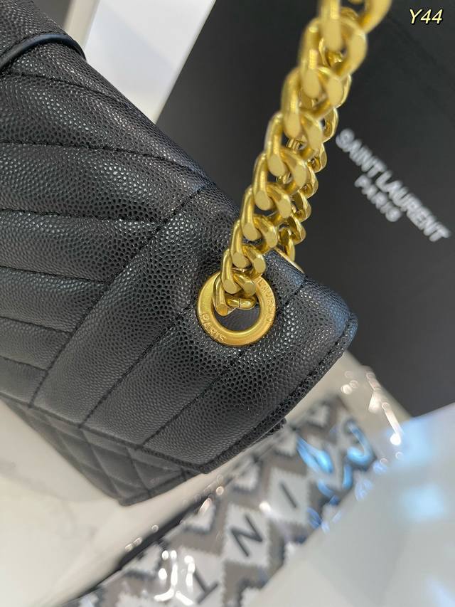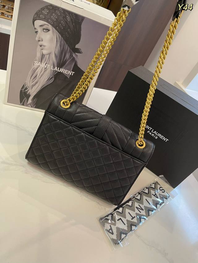 Ysl包 Envelope信封包实拍图 今天给大家更新的是envelope包身信封设计,搭配金色or银色链条简约时尚。方正的包型,透露出成熟气质,适合通勤和喜欢容量稍微大一点的你可以单肩挎or斜挎 颗粒纹牛皮,耐磨易打理