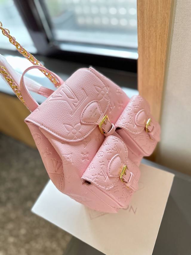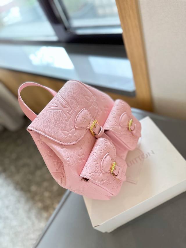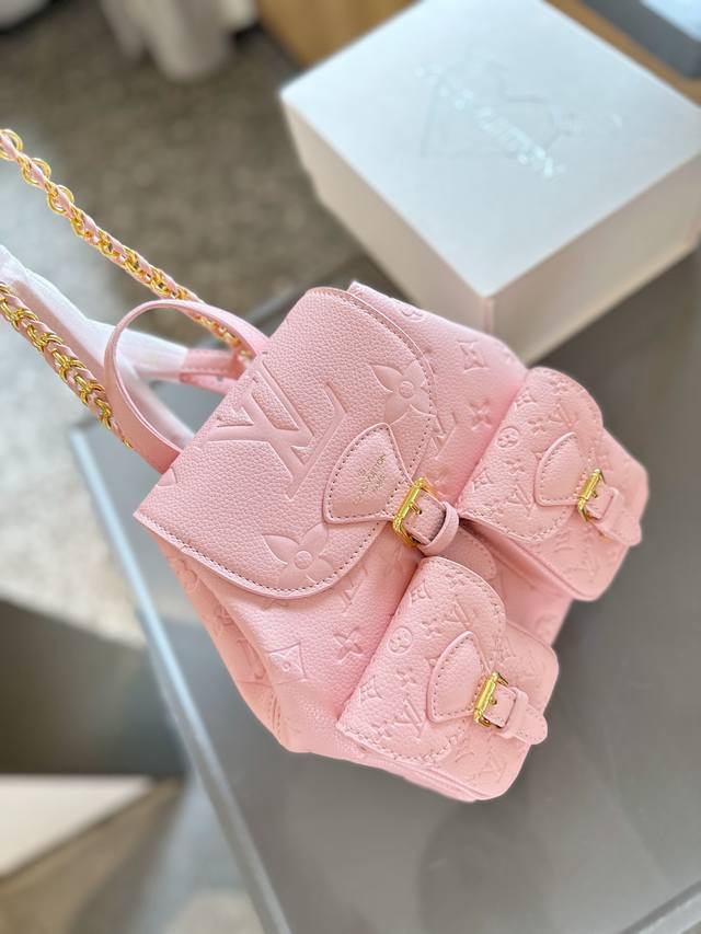 Lv 也有duma 双肩包啦 M46932 这款玲珑且实用的excursion小号背包采用monogram帆布材质,配以皮革饰边。洋溢徒步风度。主隔层采用可调节滑扣开合,正面有两个搭扣口袋。除顶部手柄外,还配有一条链条,可自由切换背携方式。尺寸:21 × 23 × 10 Cm