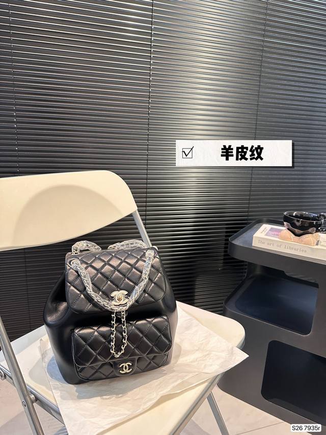 Chanel 香奈儿双肩包 新品 神仙水桶包双肩 专柜一包难求 真是绝美呀 可斜挎单肩,上身后超显大气.小巧实用 超级百搭必备单品 尺寸 21 22 货号7935R