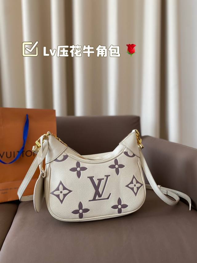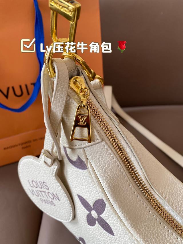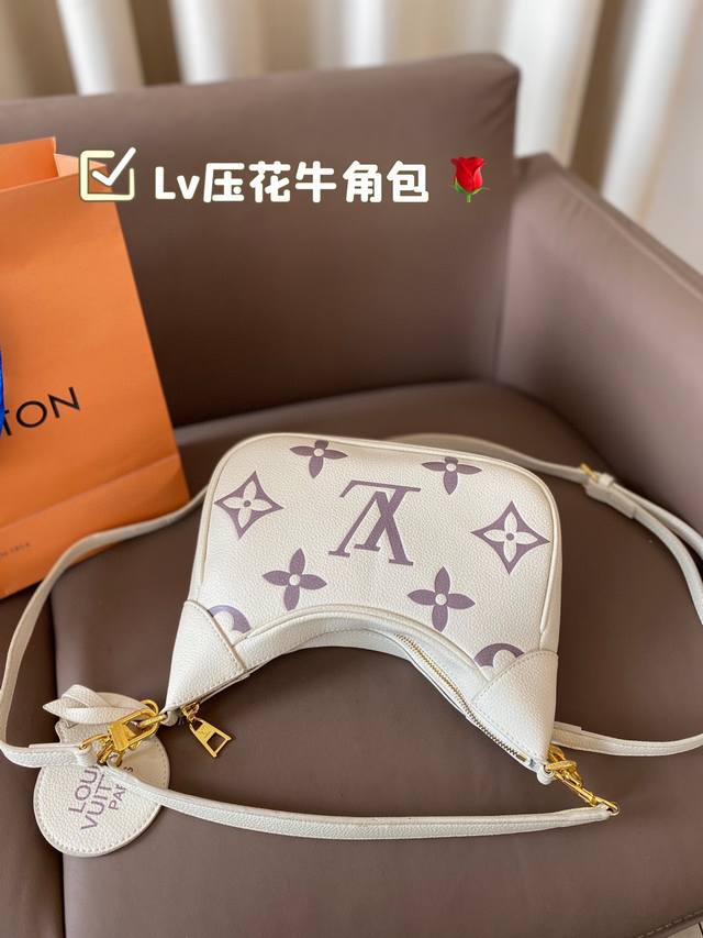 / 配折叠盒子 Lv压花牛角包 单肩背 斜跨也好 今年可流行腋下包了很轻巧 容量巨大款式百搭可以做更短的腋下包背 也很时髦 小个子 背起来毫无压力 赶紧下手吧 尺寸