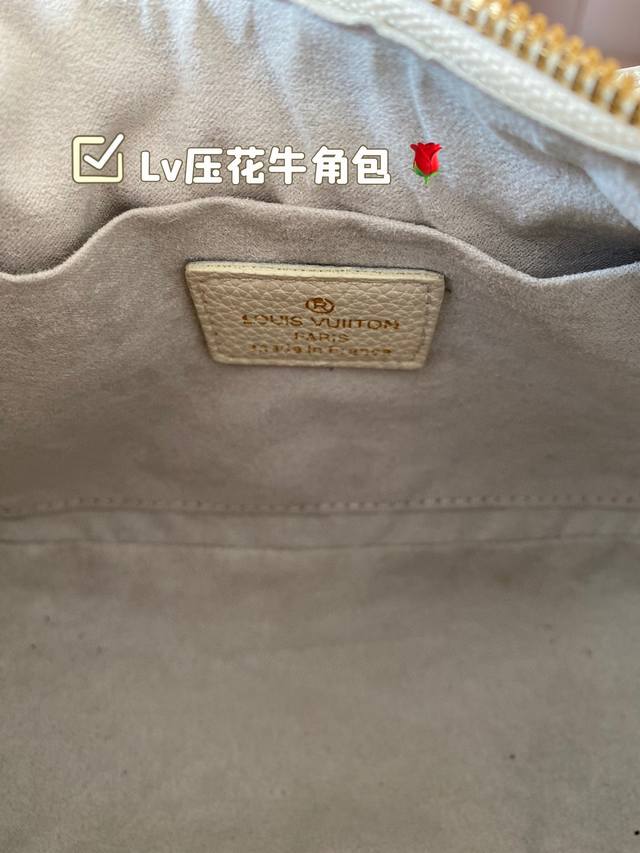 配折叠盒子 Lv压花牛角包 单肩背 斜跨也好 今年可流行腋下包了很轻巧 容量巨大款式百搭可以做更短的腋下包背 也很时髦 小个子 背起来毫无压力 赶紧下手吧 尺寸