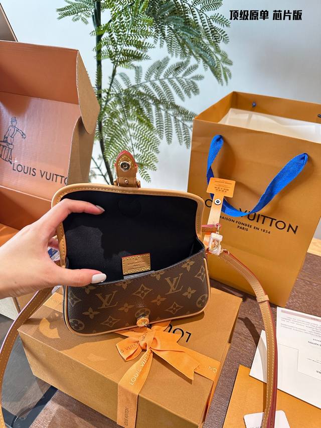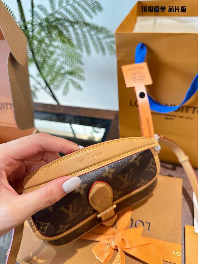 本款nano Diane为monogram帆布包身融入皮革包角和传统搭扣等复古元素,复现圆润翻盖和腰带式开合等原型细节。充裕空间可收纳手机和日常所需,可拆卸手柄和可拆卸并调节的肩带实现灵活背携,昼夜场合皆宜。