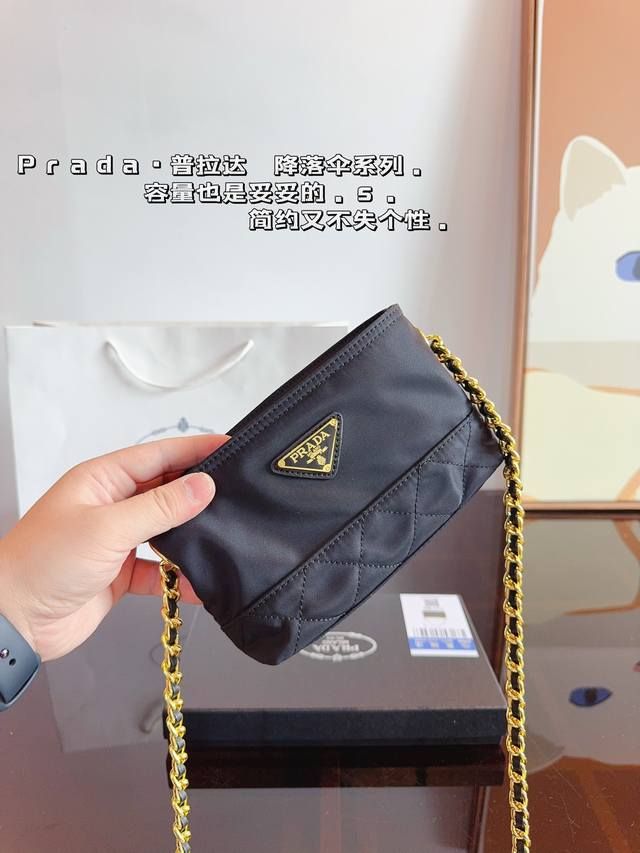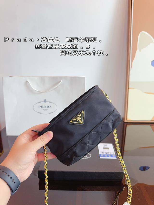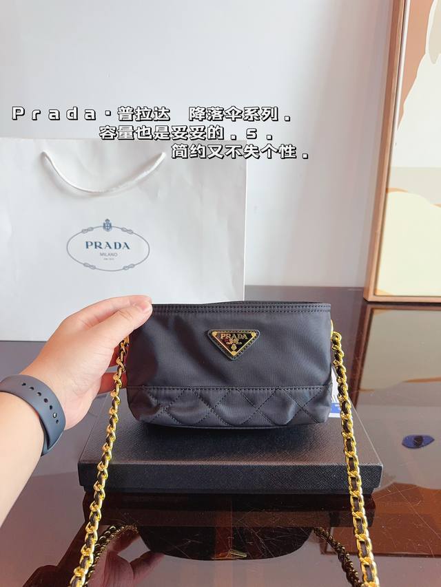配礼盒. 普拉达prada 菱格尼龙托特包 材质耐造耐磨 设计简约 包身轻便日常造不心疼 黑色万年长青款 上身酷!时髦!尺寸:18*6*11Cm