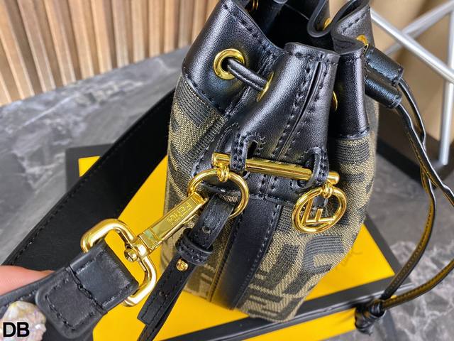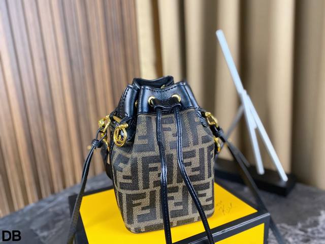 / 配折叠盒 Fendi Mon Tresor字母抽绳老花水桶包 一个集单肩斜挎手提三合一的多功能包包 包型特别好看 背起来又酷又飒 可甜可盐!尺寸:12*18.5