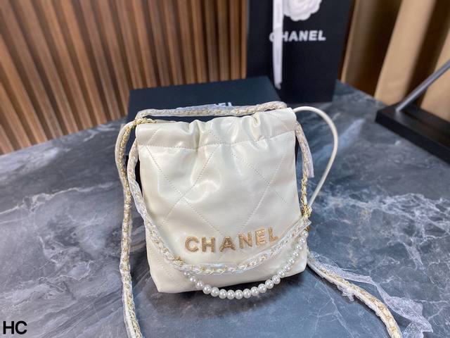 / 配全套包装 Chanel 珍珠链mini 22Bag 迷你垃圾袋也太美了叭 还多了一串珍珠 看着小小的 其实很能装 颜值直接拉到顶峰 好想拥有 尺寸:18*20